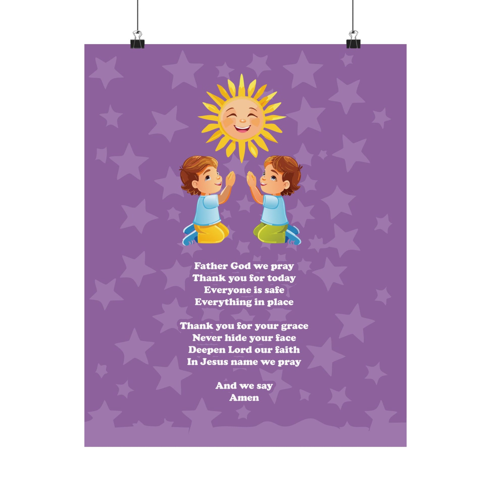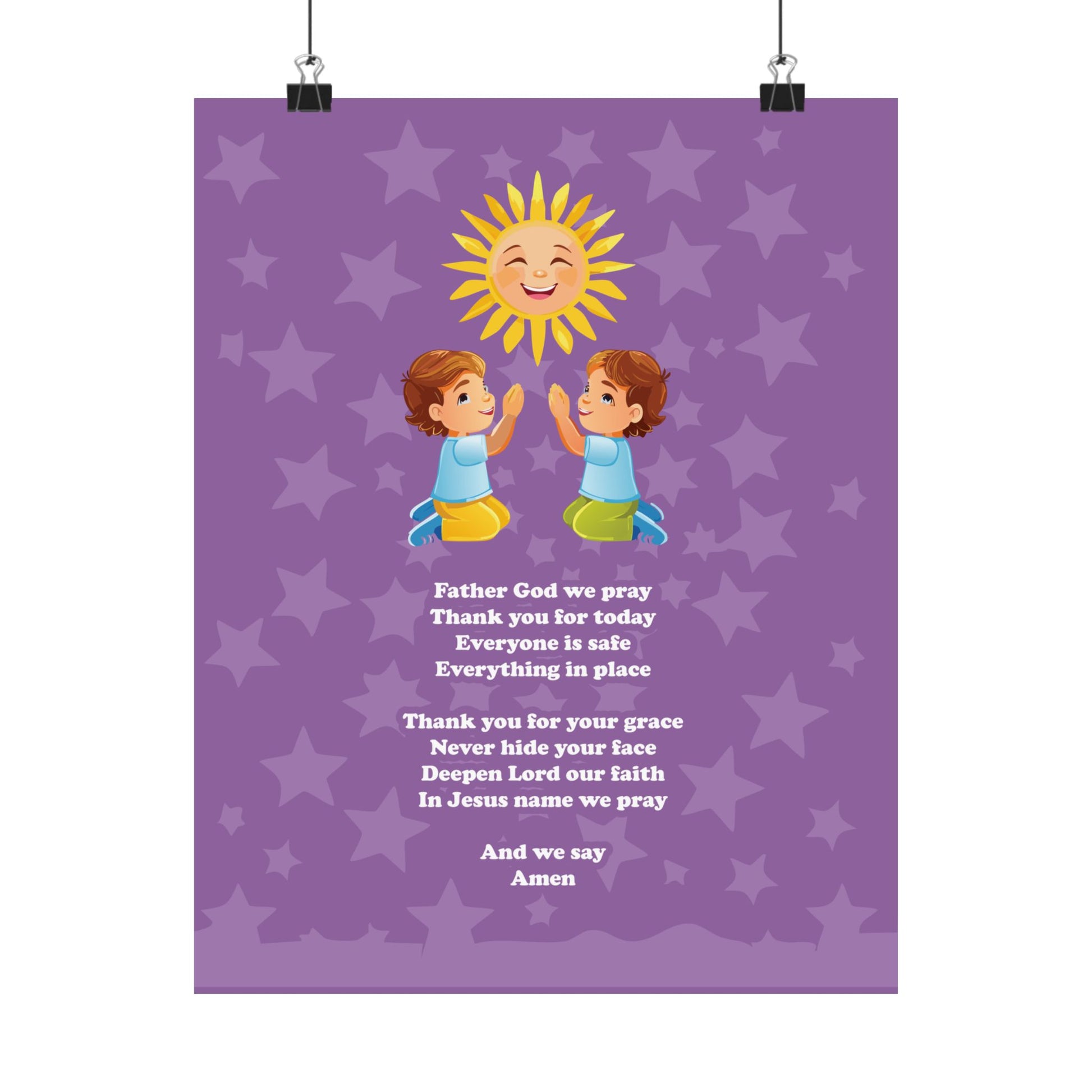 Bring a sense of peace and inspiration to your child's space with the 'Sunlit Prayer' art print. This digital artwork features a child in prayer, bathed in the soft glow of a radiant sun, accompanied by a simple, heartfelt prayer verse. Perfect for nurseries, bedrooms, or as a thoughtful gift, this print offers a daily reminder of gratitude and faith. Instantly downloadable and accessible worldwide, this artwork brings a touch of spiritual warmth and inspiration to any home.